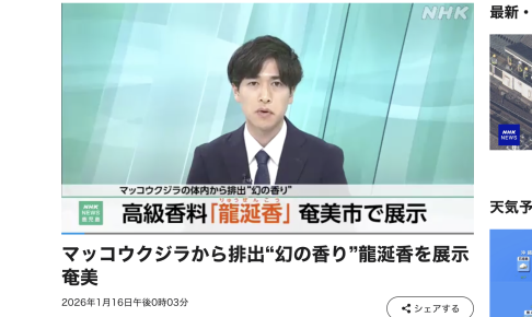 マッコウクジラから排出“幻の香り”龍涎香を展示 奄美2026年1月16日 NHK ONEニュース
