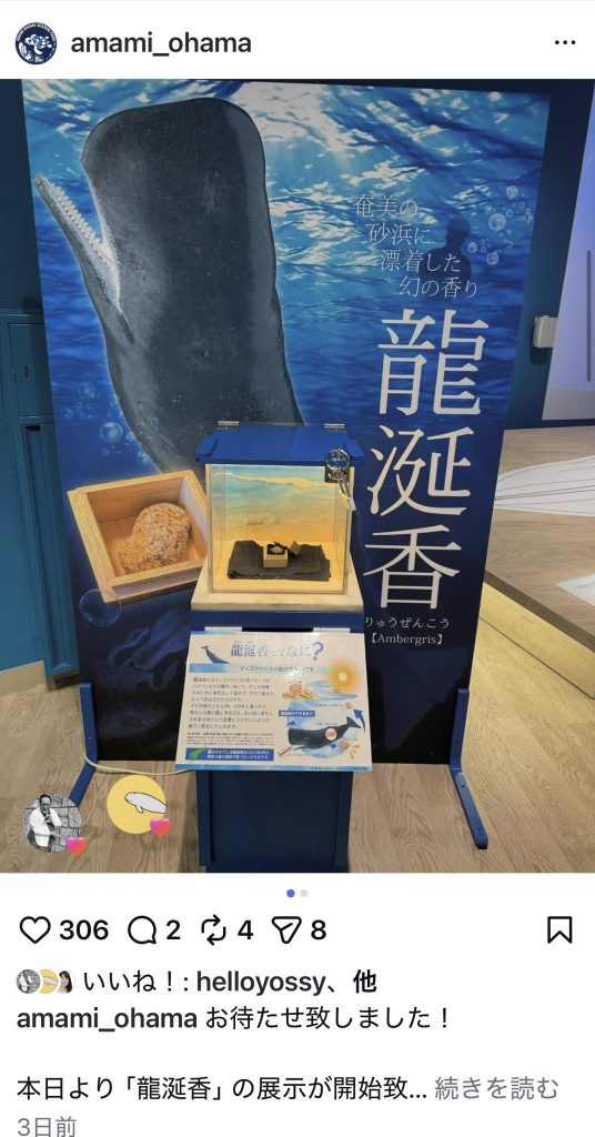 奄美海洋展示館にて昨年奄美市に寄贈した龍涎香の展示が始まりました